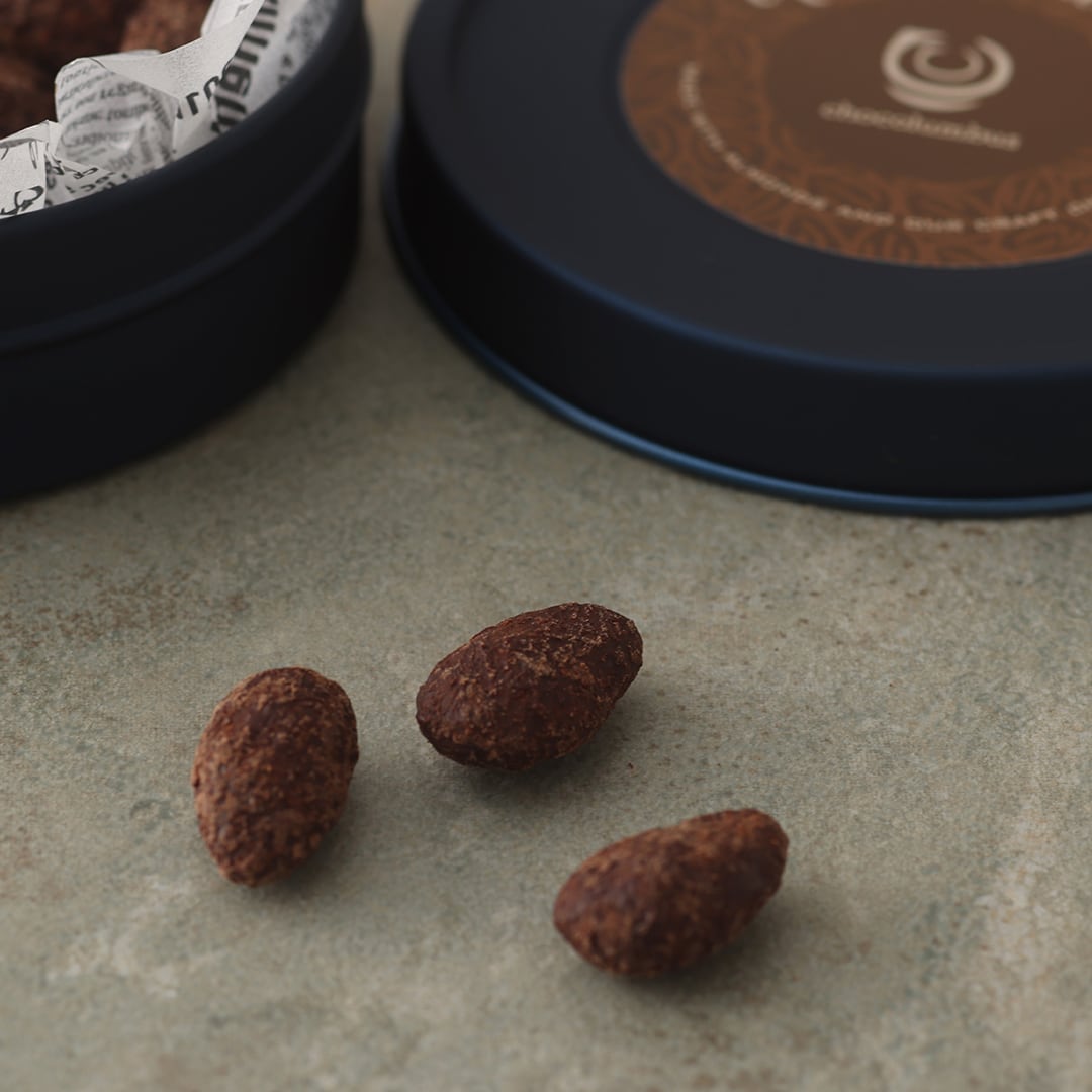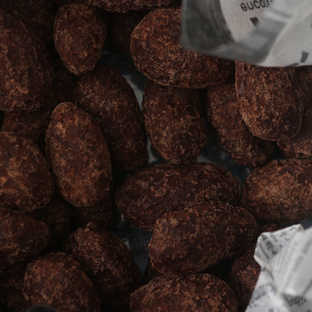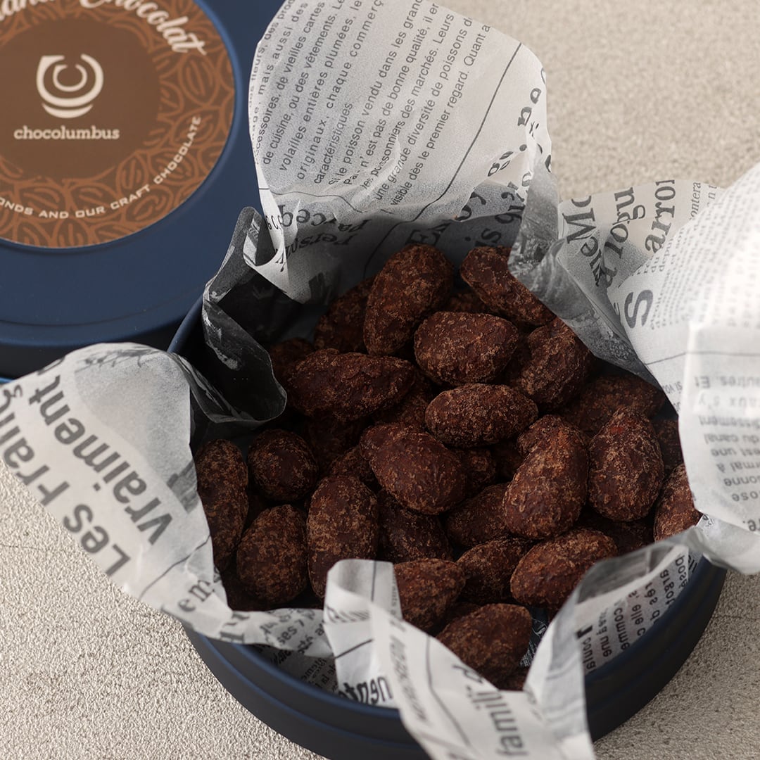 USエクストラNO.1(米国農務省によるアーモンドの等級)の高品質のアーモンドを贅沢に使い、天然のオリゴ糖を多く含む甜菜糖でキャラメリゼし、自家製チョコレートでコーティングを施した「大人のおやつ」です。